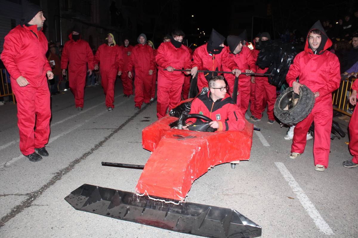 Amb els ulls posats en els informes meteorològics i les alertes pel vent, aquest dissabte Solsona ha celebrat un dels actes més esperats i multitudinaris: la desfilada de comparses, que enguany estava limitada al 700 persones, per raons logístiques. Amb tot, més de 3000 persones s'han congregat al la Carretera de Torà i a la Plaça del Camp per gaudir d'un espectacle que es presentava sota el títol de la "Revetlla del Cabdill", una temàtica que recorda els 50 anys de la mort del dictador Franco, amb to satíric i burlesc, i així s'ha pogut veure a l'inici de l'acte una maqueta del Valle de Los Caidos, que era desmuntada per donar pas al la desfilada.