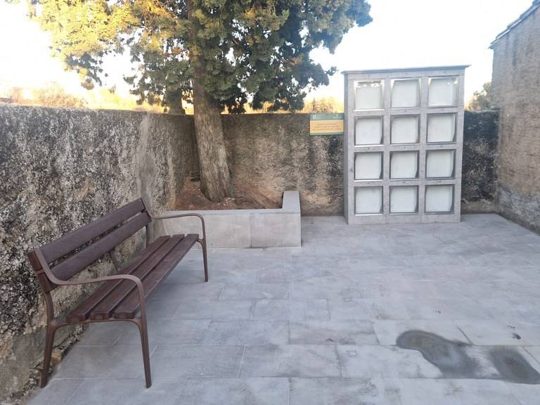 Les obres han consistit en la construcció d’un columbari que es preveu per a 12 unitats que es plantegen com a 4 monòlits. Al mateix temps, s’ha arranjat el parterre de l’arbre, la col·locació d’un banc i millora del paviment.