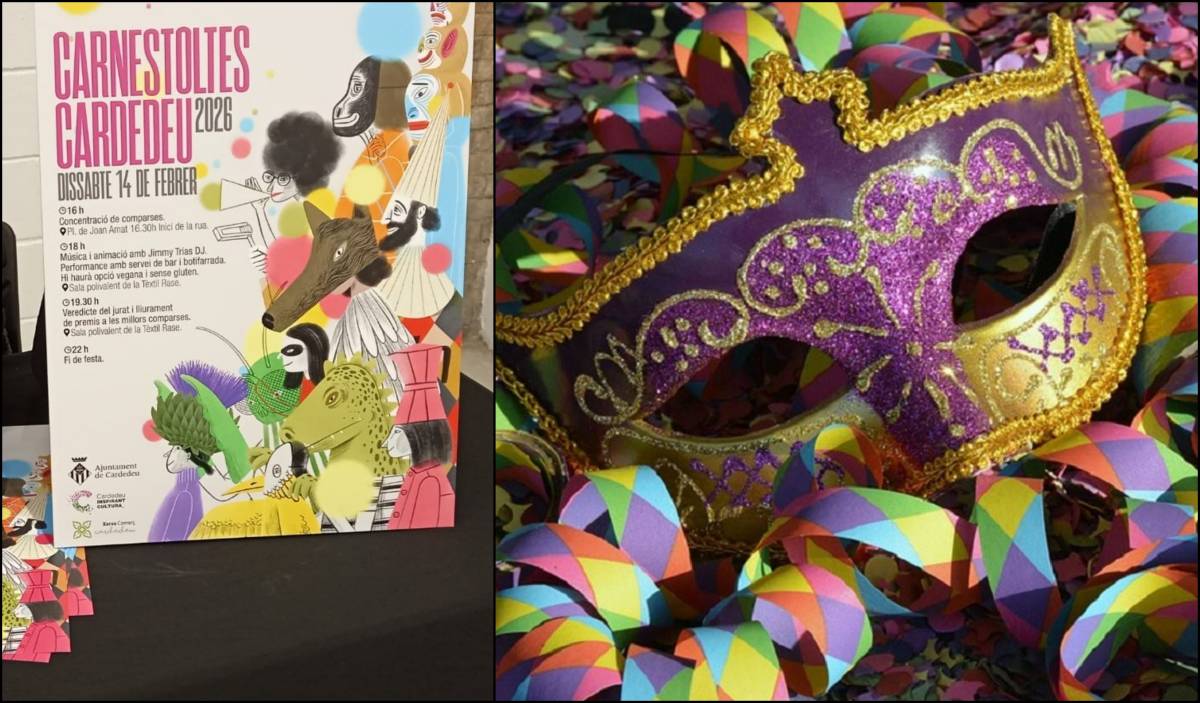 El Carnaval de Cardedeu se celebrarà el dissabte 14 de febrer i s’iniciarà a les 16 hores amb la concentració de comparses a la plaça de Joan Amat. Mitja hora més tard, a les 16:30 hores, començarà la rua pels carrers del municipi. A partir de les 18 hores, la festa es traslladarà a la sala polivalent de la Tèxtil Rase, on hi haurà música i animació a càrrec de Jimmy Trias DJ, així com diverses performances, servei de bar i una botifarrada amb opcions vegana i sense gluten.