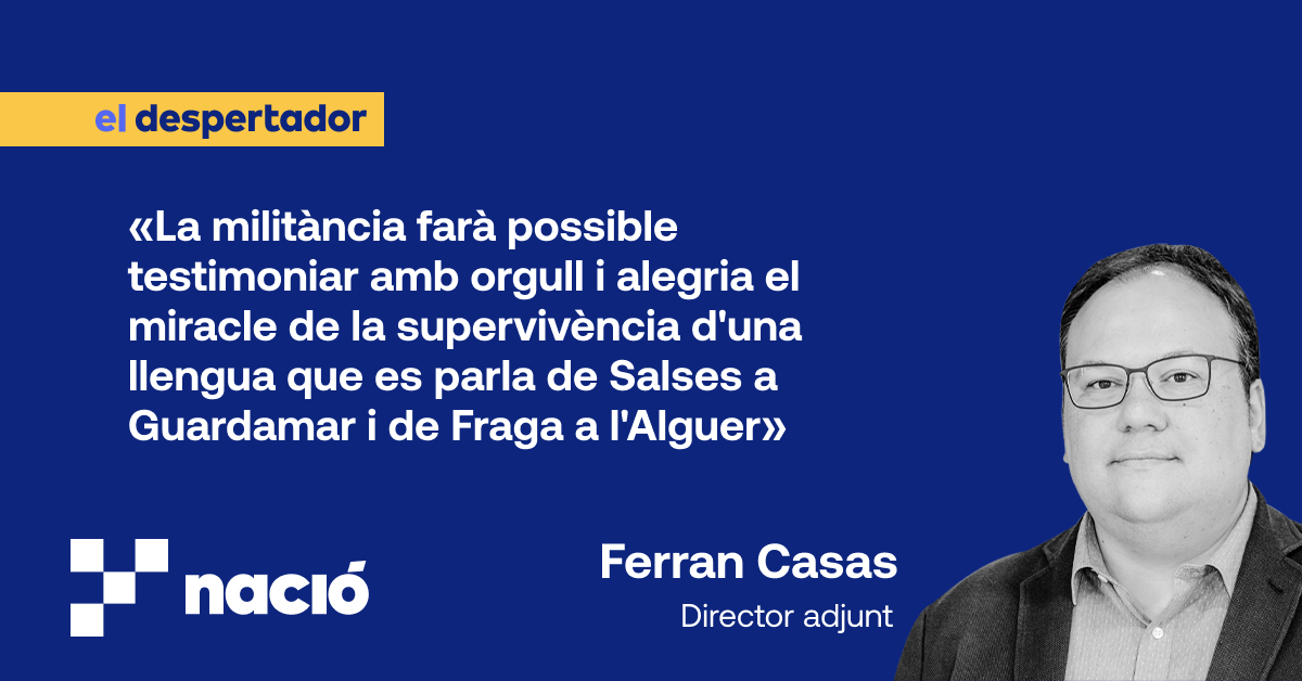 Però no n'hi ha prou. Entre altres coses perquè difícilment tots els governs i algunes empreses tindran sensibilitat amb la llengua, el nostre tresor nacional més preuat, si no noten una pressió ciutadana permanent i exigent al carrer i de les entitats. Perquè aquesta militància, que no sempre ha d'equivaldre a conflicte o a queixa, és la que, sigui o no procliu el context polític, farà possible testimoniar amb orgull el miracle de la supervivència d'una llengua que es parla de Salses a Guardamar i de Fraga a l'Alguer. El Correllengua Agermanat és una alenada d'aire fresc i els parlants en som els grans protagonistes.