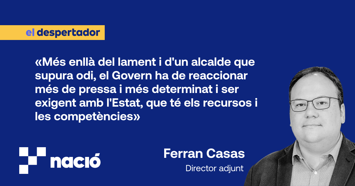 Tot això, és clar, necessita eines i lideratge. García Albiol té raó quan diu que els ajuntaments no tenen prou capacitat per resoldre aquesta situació. El problema és que a ell ja li està bé i que mai ha lluitat per fer-ho. Ell encara viu instal·lat al "limpiando Badalona" de la seva primera campanya. Però el Govern sí que ha d'aspirar a, més enllà de la crítica i el lament, donar resposta a aquestes situacions. I això vol dir, en aquest cas, reaccionar més de pressa i amb més determinació del que s'ha fet i ser exigent amb l'executiu espanyol, que és qui té els recursos i les competències.