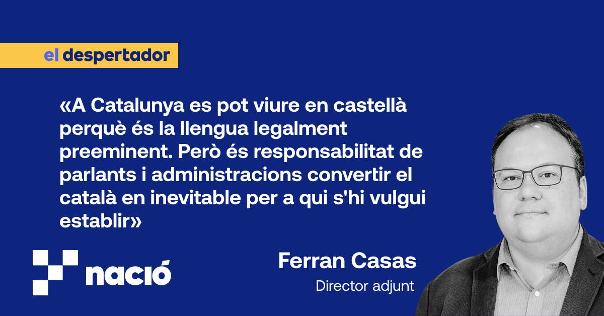 És evident que quan algú ve a Catalunya a treballar, sobretot si ho fa per feines en remot o d'altíssim nivell o per fer les més mal pagades del mercat laboral, no té la necessitat de saber català i tampoc l'obligació. I, lògicament, no ho té com a prioritat si ningú li ho exigeix. A Catalunya es pot viure només en castellà perquè la llengua legalment preeminent -la justícia ens ho recorda cada cop que retalla el règim lingüístic de l'escola- és la de l'Estat. Però és responsabilitat dels parlants i de les administracions convertir la llengua pròpia del país en inevitable per aquells que s'hi volen establir. També entre els funcionaris de l'Estat, com ara jutges o policies, oi?