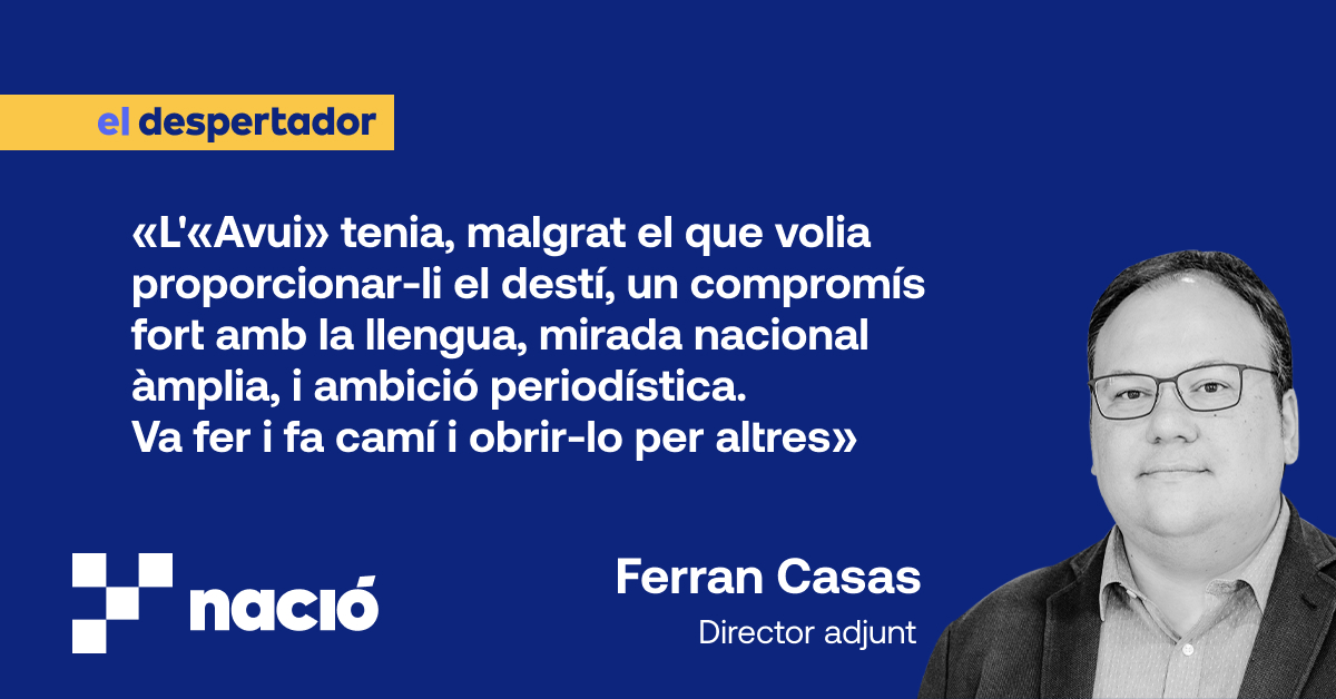 Però l'Avui era sobretot un diari que, malgrat el que volia proporcionar-li el destí, no va abandonar mai el compromís fort amb la llengua, una mirada nacional que abastava els Països Catalans, i una ambició, en aquest cas periodística, comuna en moltes de les iniciatives que han fet que el país se'n surti en contextos adversos. Perquè l'Avui no va ser un diari folklòric ni regional (això i que fos "només en català" els costava d'entendre a Madrid).