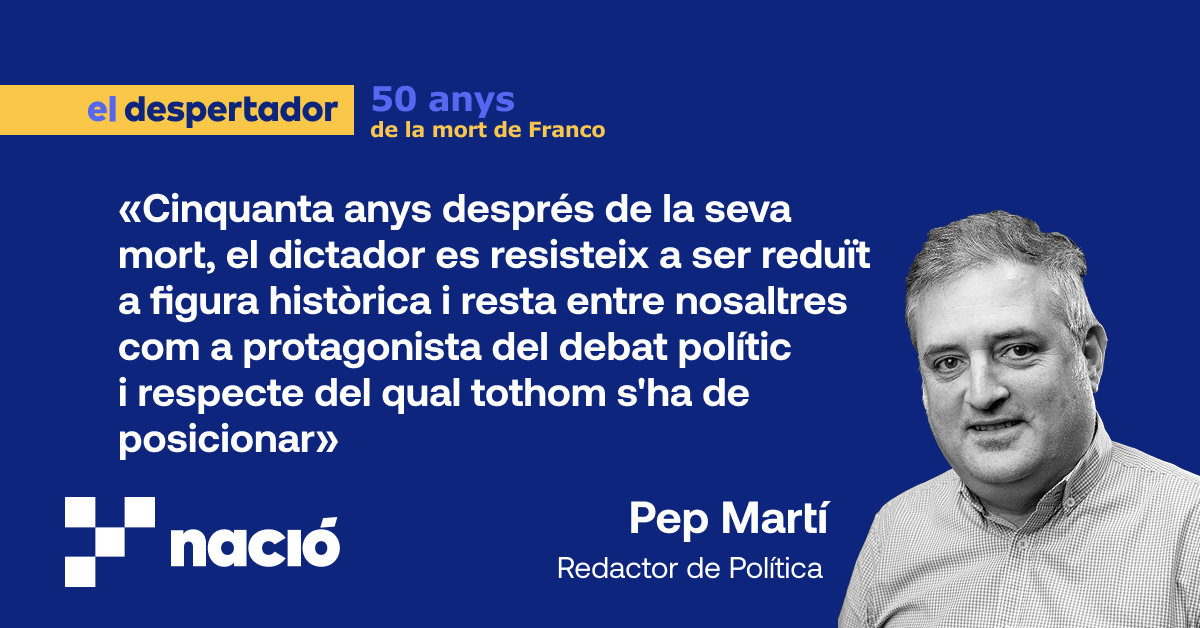 La matinada del 20 de novembre del 1975, el general Franco expirava a la ciutat sanitària La Paz de Madrid. Culminava una etapa molt llarga i negra de la història d’Espanya que per la nació catalana va ser una doble derrota. Per la pèrdua de les llibertats el 1939, però a més per l’intent de genocidi cultural que va patir el país durant 40 anys. La mort de Franco va obrir un munt d’incògnites, moltes de les quals no era tan clar que es desvetllessin de manera positiva. Hi havia molts temors en l’ambient en aquella matinada tardorenca. Però potser el que ningú s’imaginava és que, 50 anys després, Franco encara fos un personatge viu en el nostre imaginari.