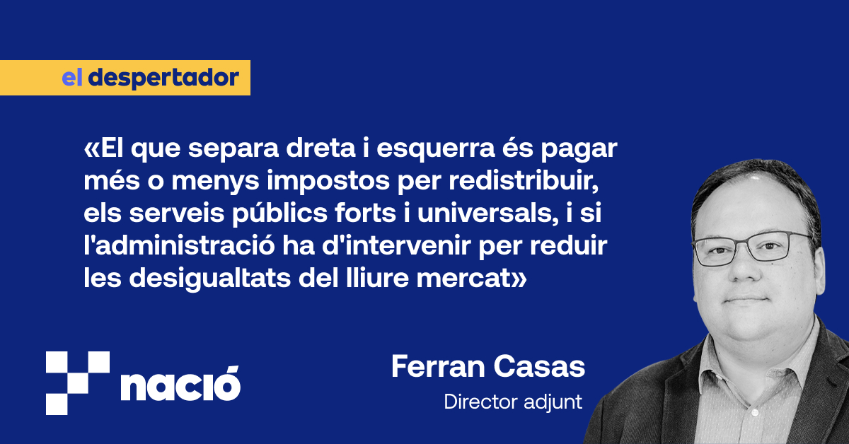 Però, en el dia a dia, es tracta de fer passar el clau per la cabota, de crear contradiccions a l'adversari i d'evitar les pròpies. Res de nou. En el cas de Junts passa, però, que el final del procés els ha obligat a definir-se més en l'eix esquerra-dreta, que és diferent del de les llibertats (siguin individuals o nacionals) o del de la simple decència. És a dir, posicionar-se sobre l'eutanàsia, el dret a decidir, els drets del col·lectiu LGTBI i de les dones, la memòria històrica o fins i tot sobre la seguretat pública no et fa necessàriament de dretes ni d'esquerres. El que et situa en una posició o en l'altra, aquí i arreu, és si vols una política fiscal redistributiva, si promous serveis públics forts i de cobertura universal, i si reclames que l'administració intervingui i reguli fins on calgui per reduir les desigualtats corregint les negativitats que pot crear l'economia de lliure mercat.