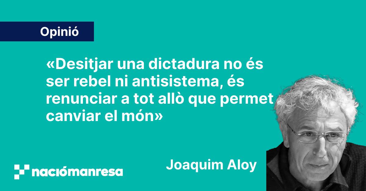 Cal lluitar cada dia per millorar aquesta democràcia, però sobretot perquè no ens la robin i no haver-la d'enyorar quan ja sigui massa tard. Les llibertats que avui gaudim i que alguns no valoren prou van costar presons, tortures, exili i morts. Desitjar una dictadura no és ser rebel ni antisistema, és renunciar a tot allò que permet canviar el món. I això és un suïcidi col·lectiu.