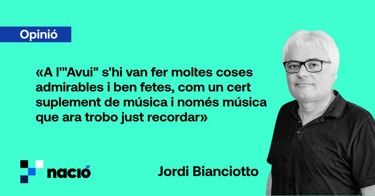 A l’Auditori, Vicent Sanchis deia que l’Avui (actualment, El Punt Avui, després de la fusió, el 2009, amb El Punt) era millor del que es pensaven els qui el feien, en una metàfora del que passa amb Catalunya. És possible. Si ell ho diu, segur que era així. Recordo un tel de baixa autoestima en aquella redacció. Però s’hi van fer moltes coses admirables i ben fetes, com un cert suplement de música i només música que ara, en el marc d’aquest 50è aniversari, trobo just recordar.