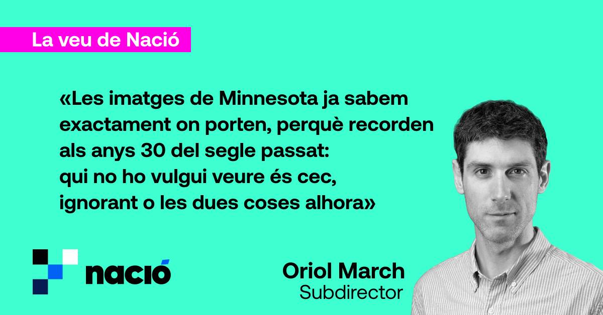 Les imatges de Minnesota ja sabem exactament on porten, perquè recorden als anys 30 del segle passat a Europa: qui no ho vulgui veure és cec, ignorant o les dues coses alhora. Que Greg Bovino, cap de files de l'ICE, porti gavardines inspirades en les SS ja hauria de permetre veure alguna pista de què pensen, què volen i fins on està disposat a arribar un cos que compta amb el suport absolut de Trump. I també, per descomptat, de Kristi Noem, secretària de Seguretat Nacional, que va culpar la víctima d'haver estat assassinada per l'ICE. Cap sorpresa: va presumir de matar la seva gossa, a qui va definir com a "assassina entrenada". Sense això, ara potser seria vicepresidenta.