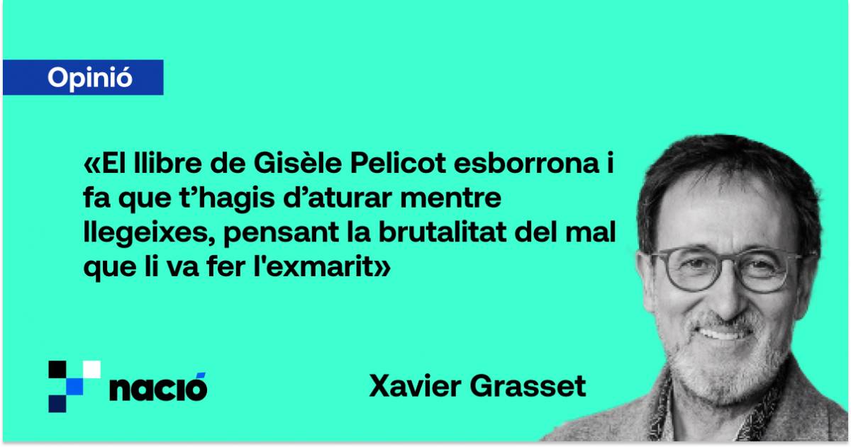 La vaig poder entrevistar per La Selva de TV3, aquests dies que ha sigut a Barcelona, després d’haver rebut a la Moncloa la comanda de l’orde del mèrit civil de mans de Pedro Sánchez, que no perd pistonada, tant declara el "no a la guerra", com fa aquest reconeixement a Pelicot que ha esdevingut una icona feminista mundial. És cert que ella rebutja aquesta etiqueta i aquesta funció, però no és menys cert que amb la seva reacció al seu terrible tràngol i judici, i tal com consideren mitjans com Time o The Independent, és una de les persones més influents de l’actualitat. En acabar la meva rastellera de preguntes era ella que em demanava què m’havia semblat el seu llibre, i tal com surt a la conversa, vaig insistir sobre un aspecte que ella remarca: el de la mirada dels altres.