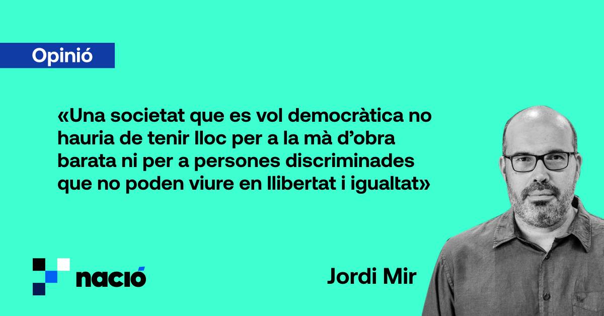 Una societat que es vol democràtica no hauria de tenir lloc per a la mà d’obra barata ni per a persones que estan discriminades i no poden viure en llibertat i igualtat. Una societat que es vol democràtica hauria de legislar i actuar per impedir la mà d’obra barata i aconseguir que aquestes persones tinguin drets garantits que els permetin viure amb llibertat i igualtat, independentment d’on hagin nascut. Això implicarà tenir debats que ni els partits tradicionals de govern ni les alternatives que creixen estan plantejant.