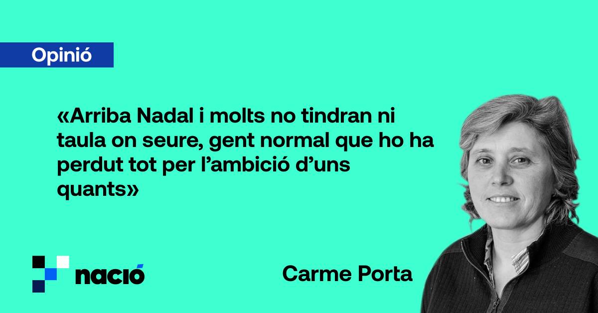 Una societat malalta que plora amb missatges de grans magatzems i ignora els vulnerables. Una societat que s’afarta mentre difama els que moren de gana. Una societat plena d’illetrats que prefereixen ignorar el dolor aliè. Una societat egoista, totalment individualista que fa malbé i escup sobre el bé comú. Arriba Nadal i molts no tindran ni taula on seure, gent normal que ho ha perdut tot per l’ambició d’uns quants.
