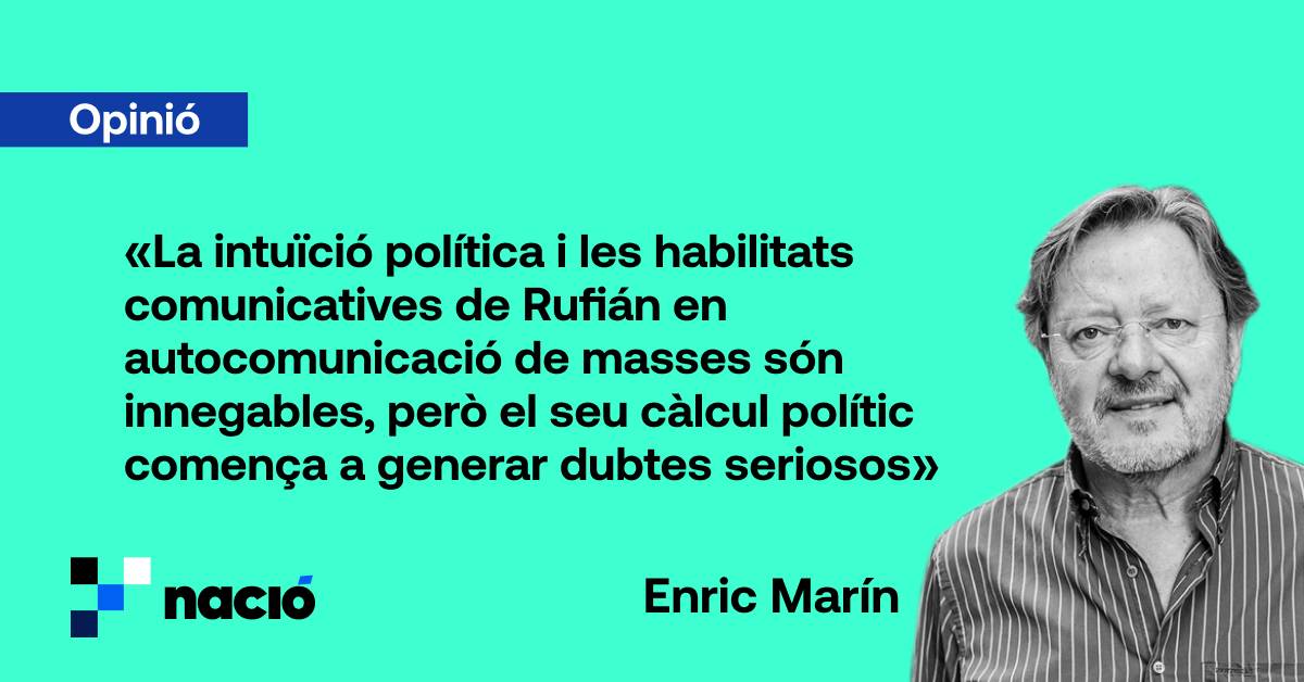La intuïció política i les habilitats comunicatives de Rufián en d’autocomunicació de masses són innegables. Sap volar per sobre de la majoria de companys i adversaris polítics... però el càlcul polític comença a generar dubtes seriosos. El seu actiu més important és la combinació de sobiranisme català i progressisme antifeixista. La credibilitat de Rufián havia de caminar sobre aquestes dues potes. I, encara que pugui semblar paradoxal, la condició de sobiranista català havia afegit credibilitat a la seva imatge pública.