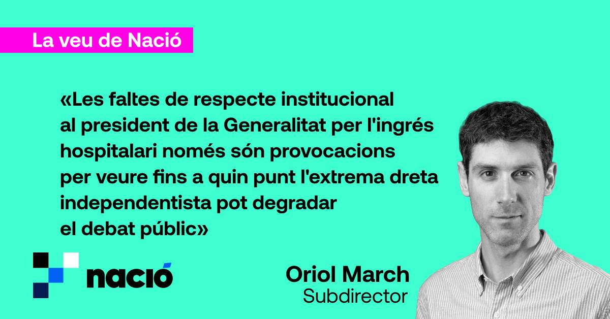 "No desitjo mal a ningú, però denuncio el tracte VIP i preferent de la casta política", va assenyalar poc després la dirigent de l'extrema dreta independentista en resposta a un usuari. Veient que el missatge generava rebuig -i després de vincular les crítiques al processisme i al 155, dos clàssics que en aquest cas encaixaven de manera excessivament elàstica en el relat victimista-, Orriols ha insistit aquest matí en què no es pot entendre el funcionament del sistema sanitari si no s'hi acudeix de la mateixa manera que la resta de ciutadans. Populista, marca de la casa, però sense tenir en compte que apreciar les institucions del país és també entendre que el president no és qualsevol.