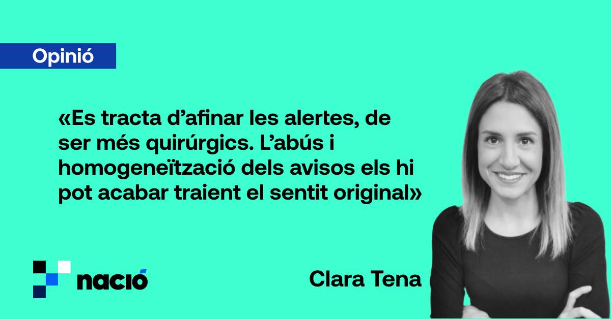 Els de dalt deuen pensar que més val prevenir que curar. És allò de posar la bena abans que la ferida. Els antecedents recents i desastrosos amb la gestió dels aiguats a València ens empenyen a ser prudents i previsors. Totalment a favor. La seguretat de les persones per sobre de tot. Però la tecnologia i els experts, en un nou món a mercè del canvi climàtic, ens haurien de servir per ser cada cop més precisos. Es tracta d’afinar les alertes, de ser més quirúrgics. De ser més flexibles perquè als llocs que no hi hagi perill la vida continuï. L’abús i homogeneïtzació de les alertes els hi pot acabar traient el sentit original. Com deia abans, sentit comú. De cadascú individualment però també dels de més amunt. No podem caure en la paranoia ni viure en l’alerta permanent. No pot ser el conte del llop i les ovelles. Si deixem de creure-hi, si ens relaxem, ens exposem a sortir volant.