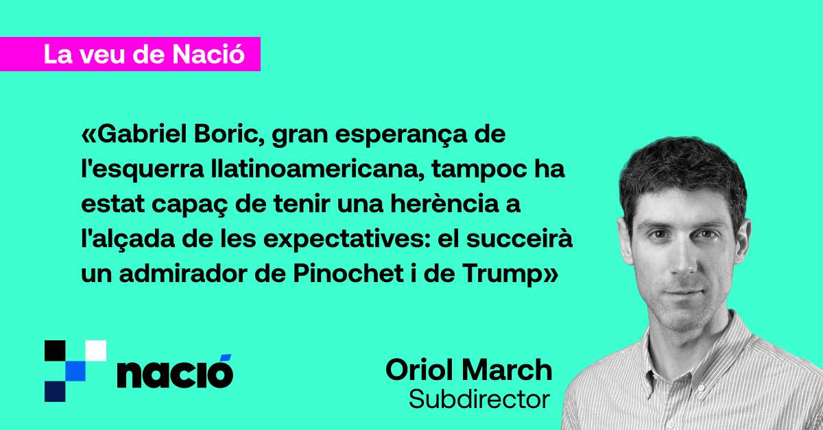 Gabriel Boric va accedir a la presidència de Xile l'any 2021. Hi aterrava com una de les grans esperances de l'esquerra llatinoamericana. Gaudia de bona relació amb Pablo Iglesias -en aquell moment ja no era vicepresident del govern espanyol; havia abandonat la política després d'intentar frenar Isabel Díaz Ayuso a Madrid amb un èxit descriptible- i coneixia la situació a Catalunya. Durant el referèndum de l'1-O, va publicar un tuit en el qual reclamava "més democràcia i menys repressió". Endreçat, amb posat institucional malgrat l'absència de corbata, tenia tots els elements necessaris per marcar una etapa al país sud-americà. Queda clar, quatre anys després, que no se n'ha sortit.