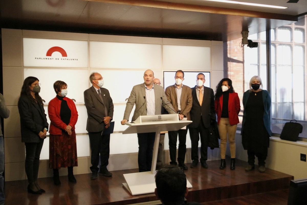 - Els impulsors de la proposició de llei per combatre el sensellarisme, aquest dimarts al Parlament -