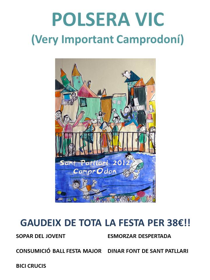 La principal novetat d'enguany és la polsera VIC, per a “very important camprodonins”. Es tracta d'una “tarifa plana” de 38 euros que permet gaudir de cinc de les principals activitats de la Festa Major: el sopar del jovent, una consumició del ball de Festa Major; el Bici crucis; l'esmorzar despertada i el dinar Font de Sant Patllari.