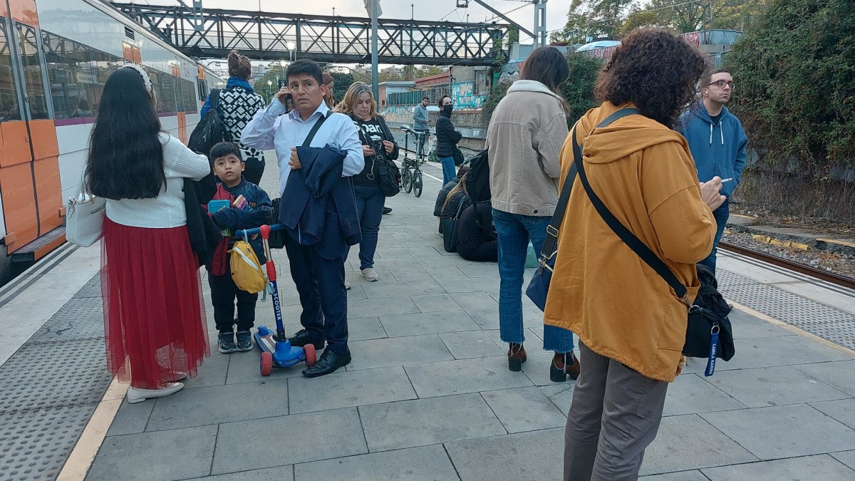 - Un grup de persones esperant per pujar al tren en una estació de la R4 -