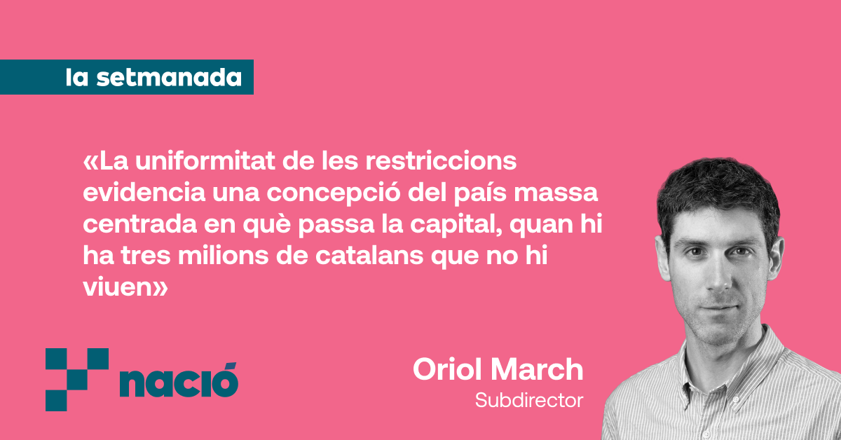 El Govern es defensa -amb certa raó, perquè va seguir el criteri dels tècnics- amb l'argument que el més rellevant era evitar al màxim els desplaçaments, sobretot en les hores d'anar a treballar i a classe. El país, això sí, va més enllà de Barcelona, del Baix Llobregat i del Besòs -tres feus tradicionals del PSC-, i per això resulta comprensible que ahir a Girona, l'Empordà i Lleida tinguessin els ulls com plats quan, amb un vent testimonial, l'activitat havia quedat aturada. No van ser pocs els alcaldes que es van queixar públicament, com també Junts o ERC. La uniformitat de les restriccions ha obert un nou front per a l'executiu, com expliquem en aquesta crònica amb Arnau Urgell i Vidal.