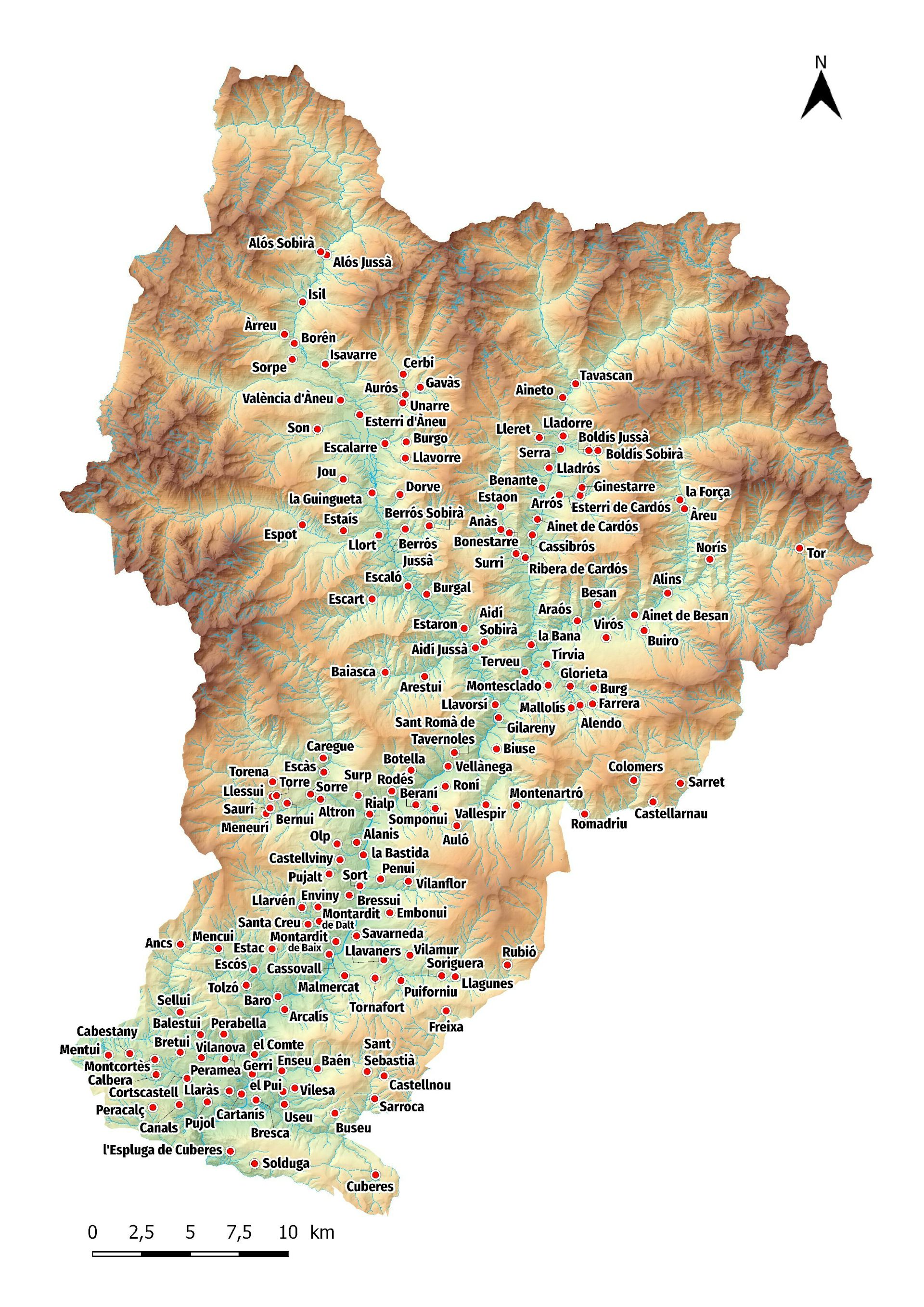 La recerca abasta un corpus total de 464 topònims: 180 noms de pobles actuals i les seves formes medievals. L’objectiu no era saber en quina llengua es van crear, sinó entendre a què es referien. Per aconseguir-ho, es va combinar la lingüística del corpus, el treball de camp, l’ús dels sistemes d’informació geogràfica (SIG) i l’estadística.